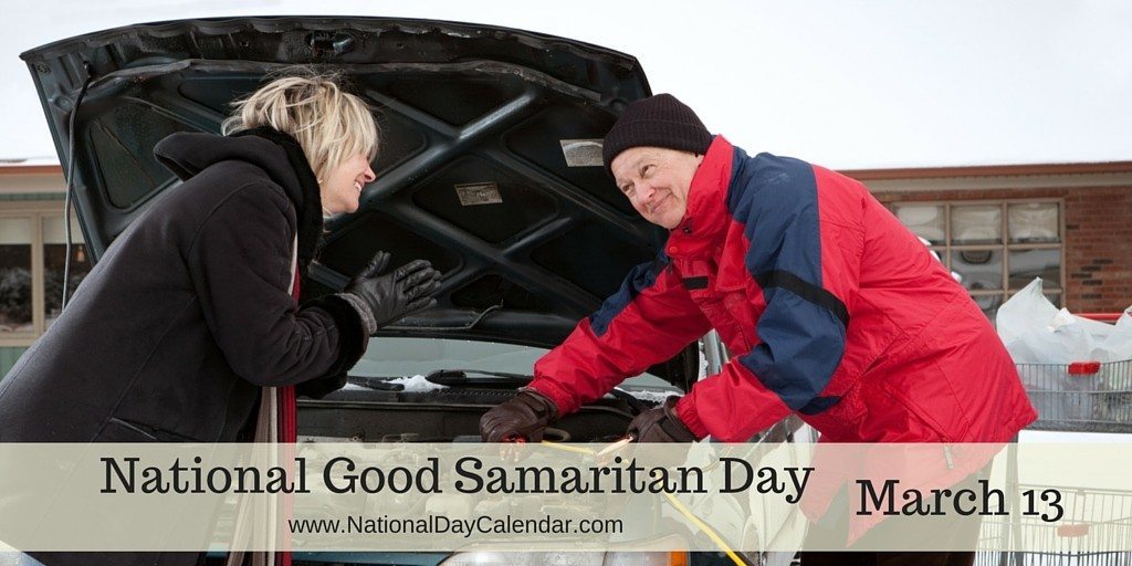 It’s National Good Samaritan Day. In my home-town area we have seen a lot of examples of good Samaritans over the past few days. The Rochester, NY, area suffered a wind storm last Wednesday. A lot of the damage is cleaned-up and most of the power is back on, but there are still large trees lying on top of garages and in people’s lawns. The fact remains, neighbors helped neighbors. Young adults went door to door in their neighborhoods to check on senior citizens. We loaned out our generator and electric crews came from a few hundred miles away to help our local company. “Warming Stations” were set up so people without power had someplace safe, warm, and welcoming to go. These centers were supplied with snacks and food by good Samaritans. People also took the work crews snacks and hot drinks. The community worked together to help each other out.