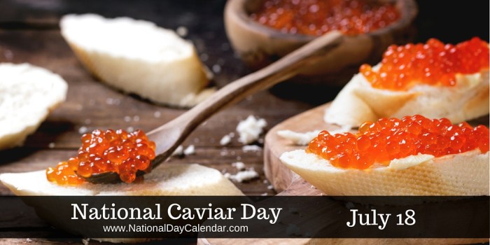 In simple terms, caviar is Sturgeon fish eggs. There are several species of Sturgeon fish. As a result, the caviar produced varies in colors depending on the species. Caviar is full of protein and vitamins making the delicacy a healthy meal. The United States was the leading distributor of caviar around the year 1900 producing over 600 tons a year. However, due to the over harvesting of Sturgeon fish for the caviar, a ban was put in place to protect the Sturgeon from becoming extinct. The population has never recovered sufficiently since the ban, resulting in caviar’s continued status as a luxury item. (Courtesy-National Day of Calendar)