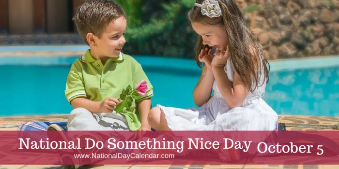 I love the picture shown for this day of Do Something Nice. It depicts at what an early age a person enjoys an act of kindness. It is a little stereotypical in that the boy is doing something nice for the girl. Oh well. The kids are cute as can be.