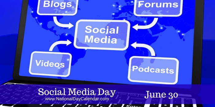 This is the day we recognize social media and how it has changed our every day lives. Think about it, depending on your age of course, the time of waiting for news of the birth of a cousin by snail-mail is long gone. We now have instant pictures or videos. I think that’s a good thing and I’m sure every family that is now spread across this nation, or the earth, thinks so too.