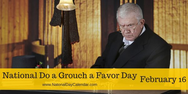 It’s National Do a Grouch a Favor Day. I love the picture they chose, it reminds me of a teacher or grandparent ready to scold a small child who is a might rambunctious, or maybe one that just brought a frog into the class room. I’m curious why they picked a man for the picture. I know quite a few grouchy women too, and, interesting that the person is older.